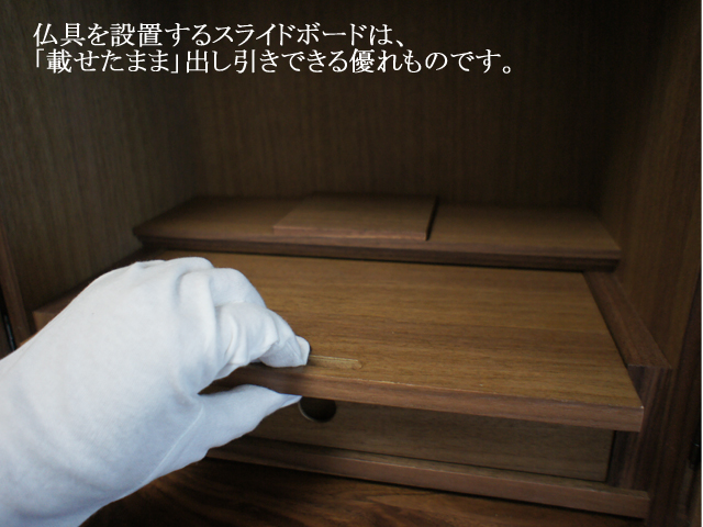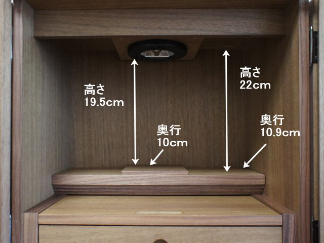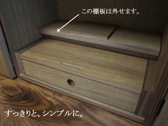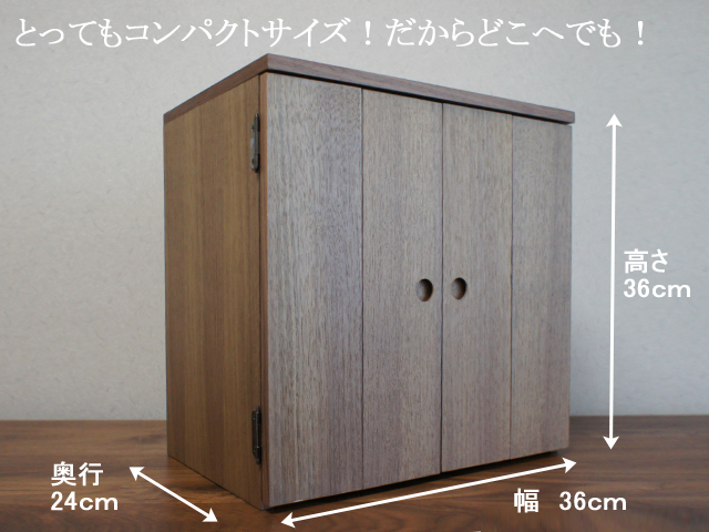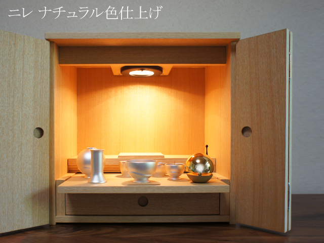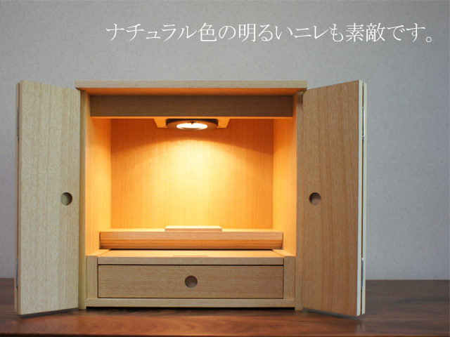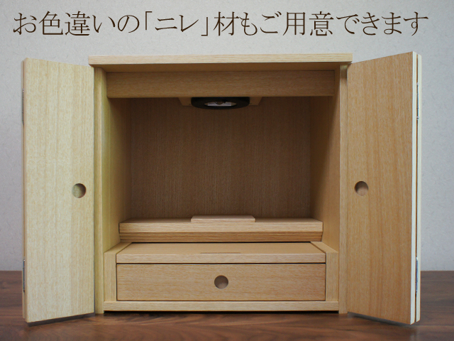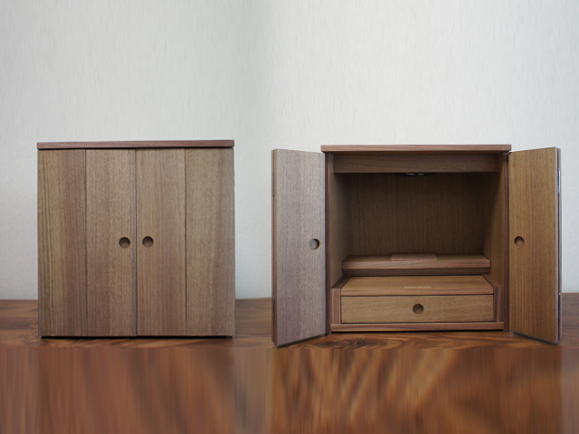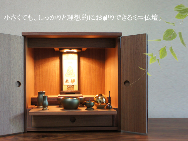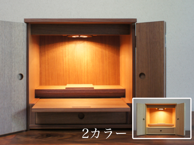 ウォールナットとニレの2色からお選びいただける、シンプルなスタイルのミニ仏壇。