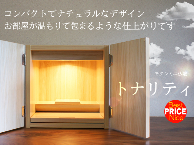 もっともシンプルなデザイン、こだわりの質感のある仕上がりのミニ仏壇。