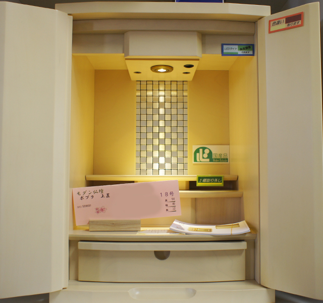 今回特に目立った、白っぽいお仏壇はコチラ。