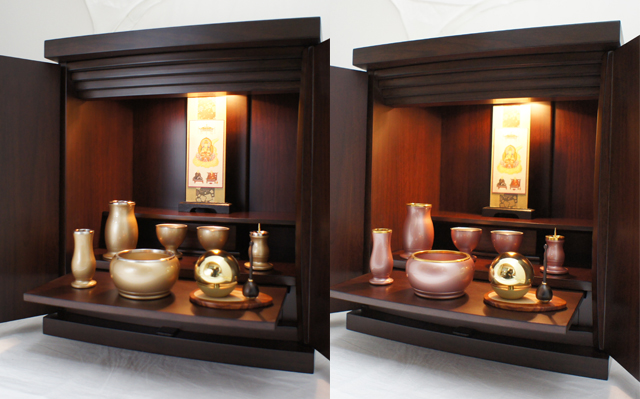 同じお仏壇でも、仏具のカラーで柔和な印象になったり