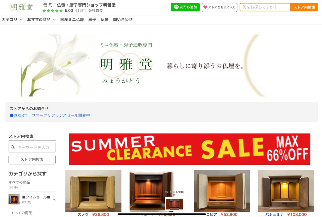2006年からインターネットによる通信販売専門の仏壇店として「明雅堂」を立ち上げ今に至りますが、8月よりmyougado.jp として新たにリスタートを切りました!これからもどうぞよろしくお願いいたします。