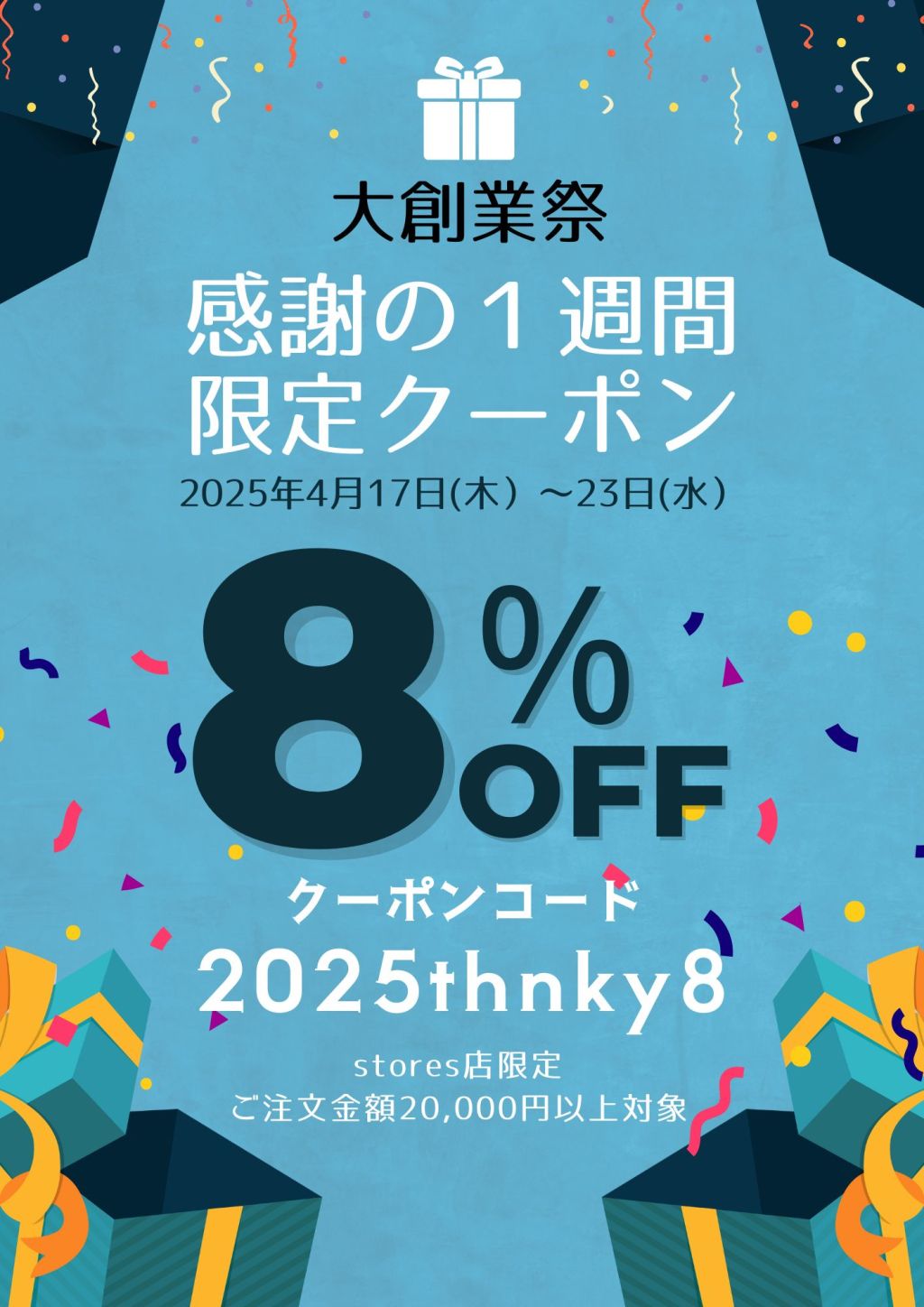 4月17日(木)から1週間ご利用いただける限定クーポン(8%OFF)もご案内中です。